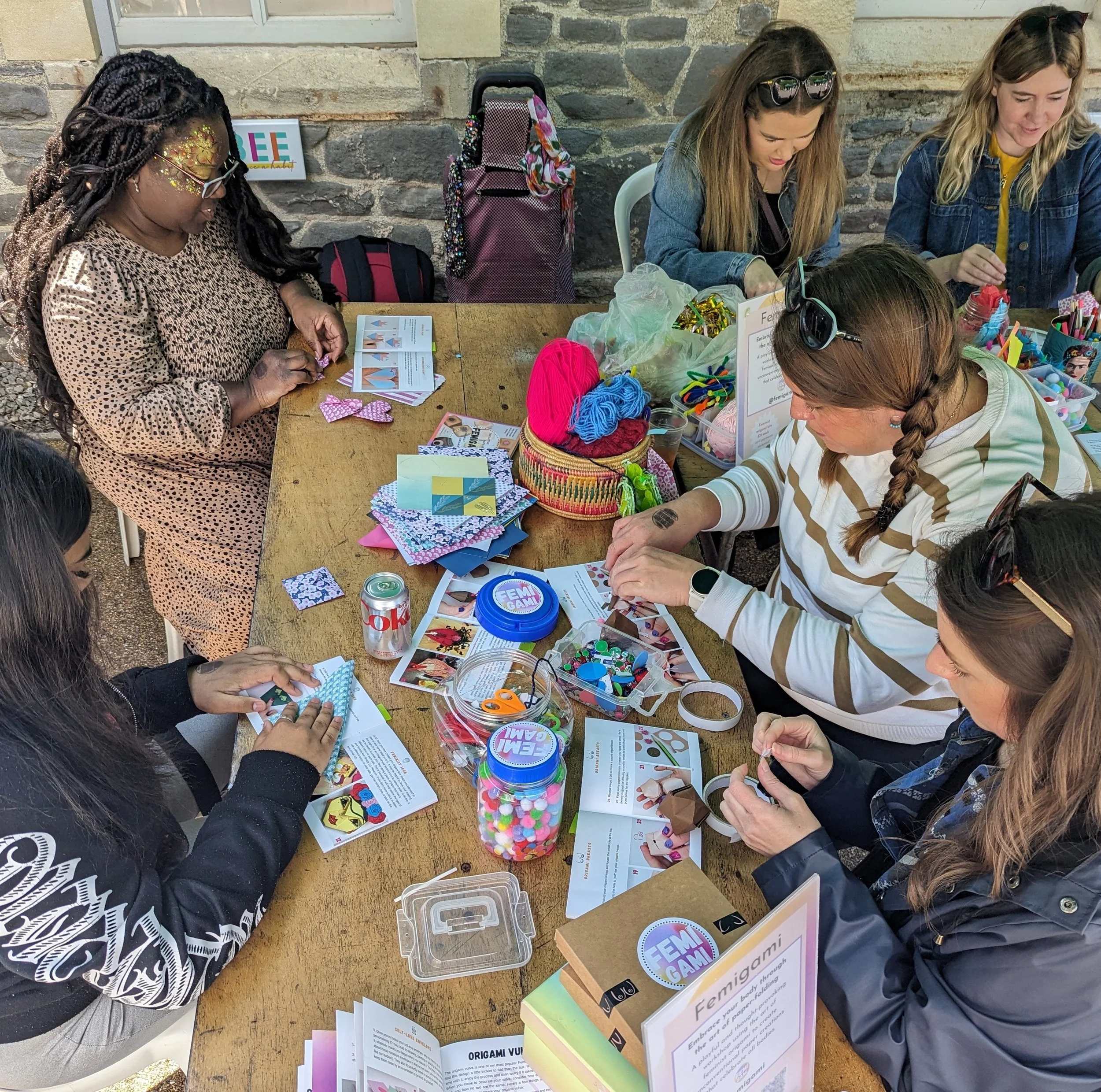 This page is for anyone wanting to book an Femigami workshop for their own group or event. Femigami works perfectly as a self-contained workshop of up to 50 people, or as a drop-in activity (i.e. at conferences or festivals) for more people.